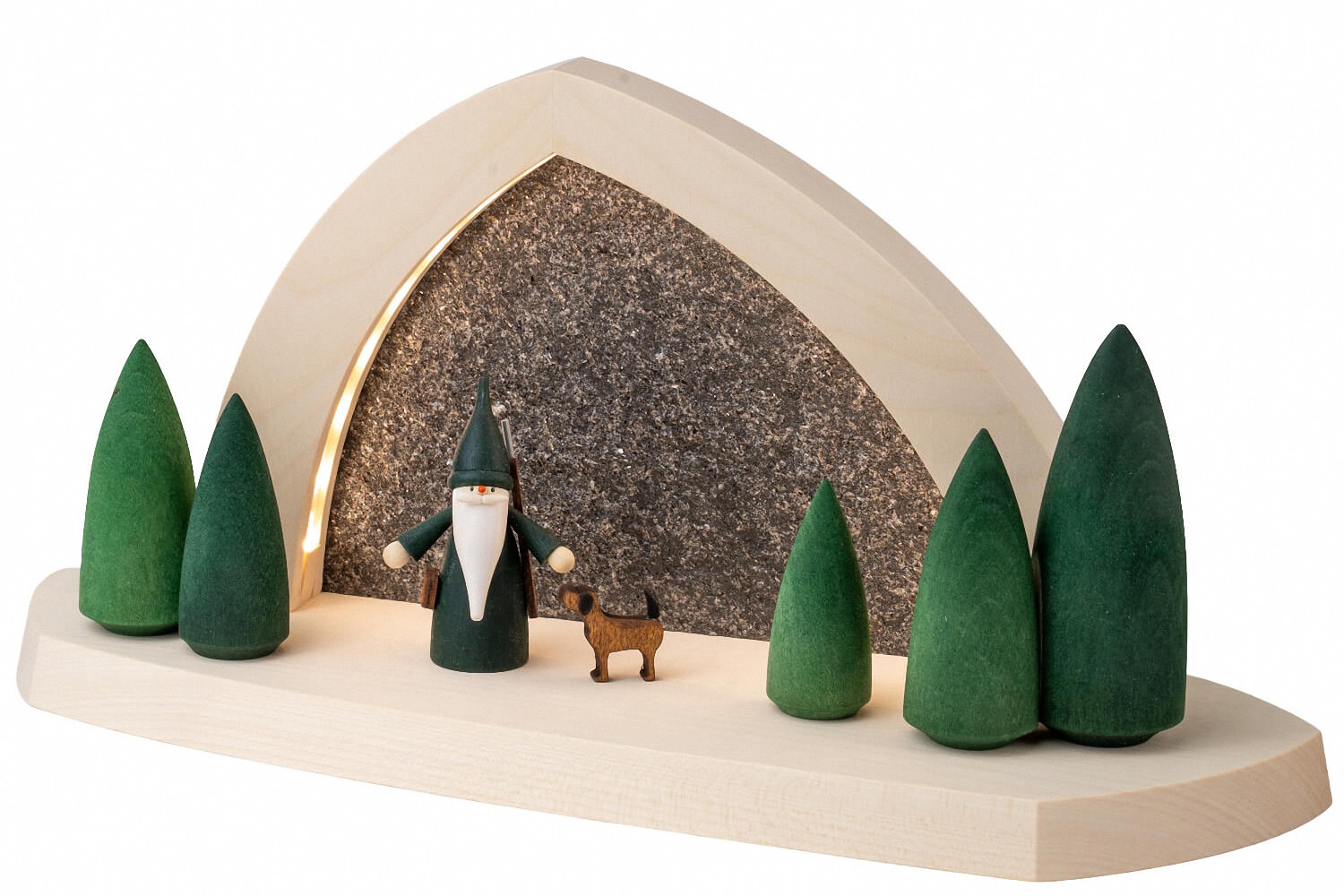 Натуральный светодиод с каменной аркой освещает охотничьих гномов из народного искусства Сейффена