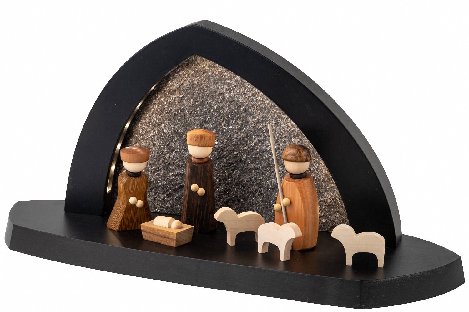 Светодиодная каменная арка из антрацита с мотивом рождения Христа интерпретирует центральную сцену рождественского сезона в современном и одновременно спокойном стиле, в котором Мария, Иосиф и младенец находятся в центре внимания и создают атмосферу созерцания и тишины, оставляя место для личных мыслей. Изготовленная в курортном городе Зайффен компанией Seiffener Volkskunst eG, эта модель сочетает традиционное деревянное искусство Эрцгебирге с современным языком дизайна, благодаря чему тщательное выполнение и чёткие линии придают изделию высококачественный и вечный вид. Благородная антрацитовая рама сознательно контрастирует с задней стеной, выполненной из настоящего камня, чья естественная структура придаёт мотиву глубину и заземление, а также гармонично подчёркивает сцену. Тёплая белая светодиодная лента с 3000 Кельвинами обеспечивает равномерное и атмосферное освещение; он управляется через USB-C порт, розетка питания не входит в объём доставки, а светодиодное освещение относится к энергоэффективному классу G и предназначено для использования в помещениях. С размерами 15 x 31 x 11 см, светодиодная каменная арка идеально подходит для подоконников, сервантов или полок, сочетается с классическими и современными рождественскими украшениями и создаёт тонкий, спокойный световой акцент.