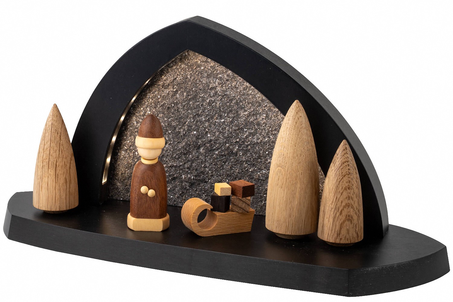Светодиодная скальная арка из антрацита с мотивом Санта-Клауса на санях подхватывает знакомую и радостную сцену адвентского сезона и превращает её в спокойный, стильный дизайн, в котором Санта-Клаус на санях символизирует ожидание, прибытие и тихие моменты перед праздником. Изготовленная в курортном городе Зайффен компанией Seiffener Volkskunst eG, эта модель сочетает в себе деревянное искусство Эрцгебирге с современными световыми технологиями, а чёткий язык дизайна и сбалансированные пропорции придают изделию вечный вид. Антрацитовый каркас выглядит одновременно сдержанно и благородно, а вместе с задней стеной из настоящего камня образует захватывающий материальный контраст, придающий мотиву глубину и эффективно подчёркивая естественного цвета Санта-Клауса с санями. Тёплая белая светодиодная лента с 3000 Кельвинами обеспечивает равномерное и атмосферное освещение; он управляется через USB-C порт, розетка питания не входит в объём доставки, а светодиодное освещение относится к энергоэффективному классу G и предназначено для использования в помещениях. С размерами 15 x 31 x 11 см, светодиодная каменная арка идеально подходит для подоконников, сервантов или полок, гармонично вписывается в классические и современные рождественские украшения и создаёт тонкий, спокойный свет в тёмное время.