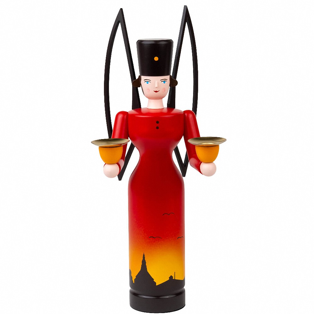 Утро «Ангел года Шаллинга» 2026 воплощает спокойствие, уверенность и тихое начало нового дня. С величественным ростом в 30 см он одновременно выражен и нежно харизмателен. Тёплая цветовая гамма и чёткий язык дизайна делают его особенно привлекательным для всех, кто ценит ангельское искусство Эрцгебирге. Изготовленный в народном искусстве Сейффена по дизайну Шаллинга, этот Ангел года был создан в курортном городе Зейфен и таким образом сочетает традиции дизайна бренда Schalling с современным ручной работой в народном искусстве Сейффена. Ангел одетый в мягкий оранжево-красный цвет, излучающий тепло и спокойствие. Особая деталь на основании его платья — силуэт игрушечной деревни Зайффен с известной церковью Зейфена и Швартенберг, изображёнными в тёмно-коричневом цвете. Это прекрасное изображение заметно закрепляет ангела в его родине Эрцгебирге. В руках ангел года держит две свечи и подходит как для классических пирамидальных свечей, так и для современных LUMIX. Таким образом, ангел может быть индивидуально освещен и адаптирован к разным жизненным условиям, не теряя спокойствия. Ангел года 2026 подходит как особый коллекционный предмет, качественный подарок или постоянный элемент коллекции ангелов.